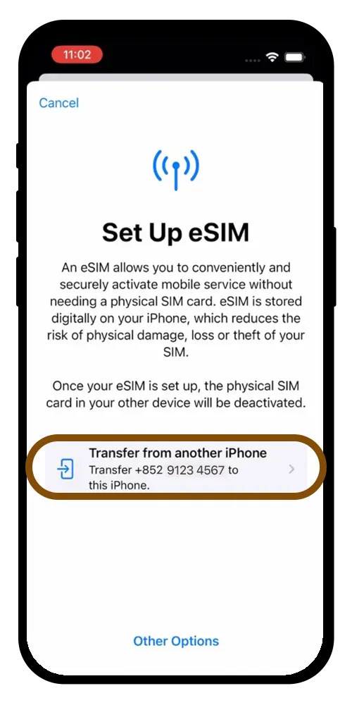 - デバイスを切り替えてeSIMを使用する前に、Wi-Fiに接続してください。まず 次に、eSIMを新しいデバイスに転送します。 新しいデバイスにeSIMを転送してください。