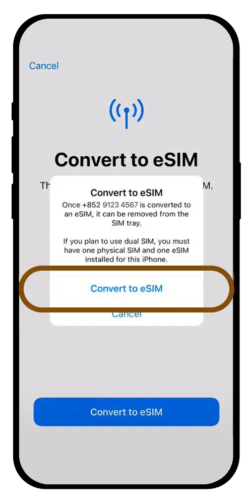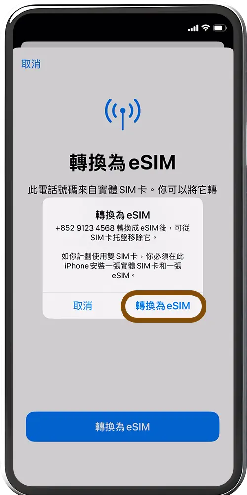 ^変換が完了すると、物理的なSIMカードはすぐに無効化されます。 SIMカードはすぐに無効化され、保管する必要はありません。